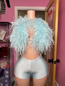 “Pre-Order 10-15 business days custom” So MF Sexy Ostrich Fur Halter Neck & Short Set- Icy Blue