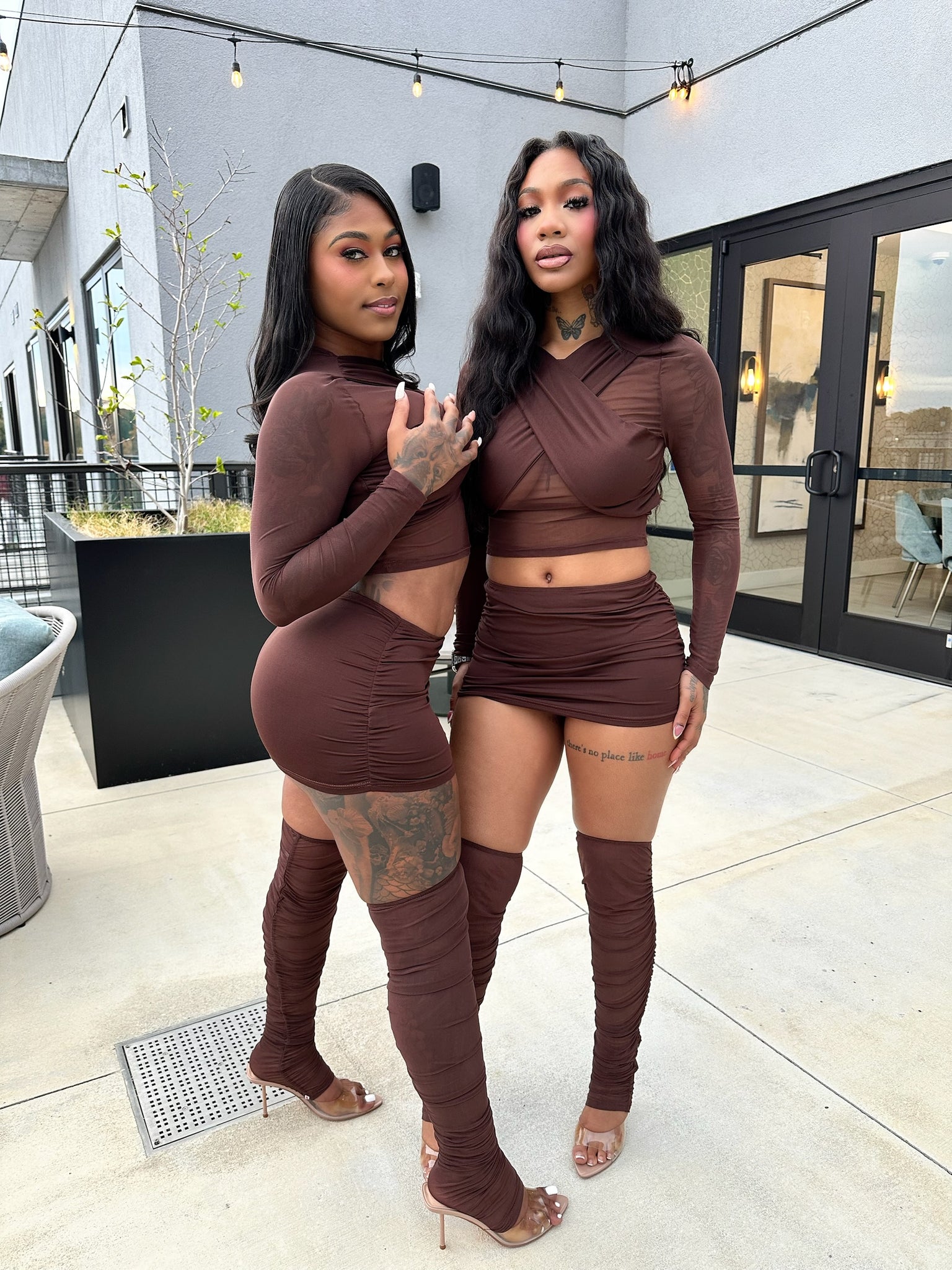 After Dark Mesh 3 Piece Mini Skirt Set- Brown