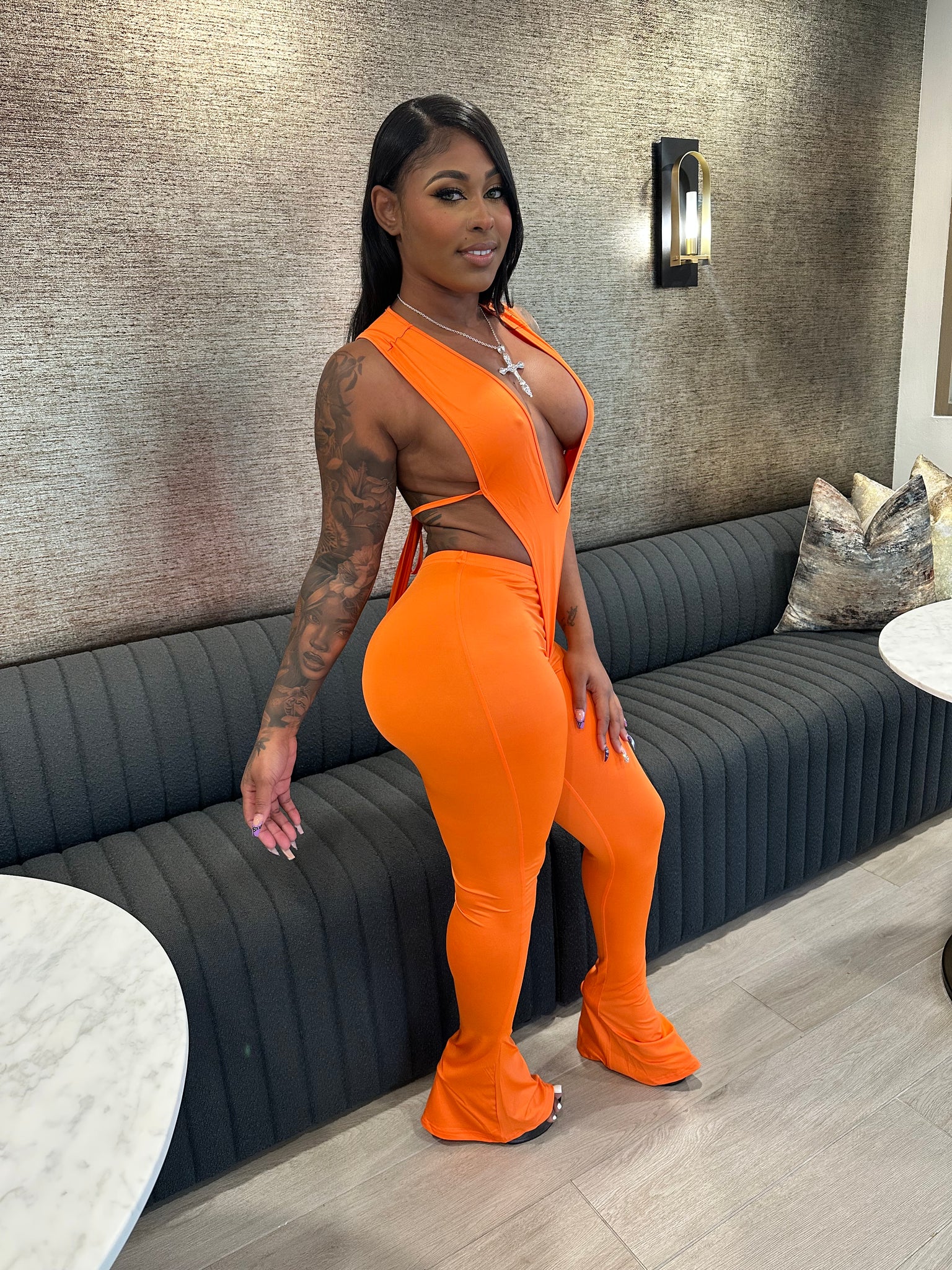 The open-back design with tie detail gives a sultry finish, while the buttery-soft stretch fabric hugs your waist, hips, and thighs for that signature LuxeChic snatched look. Whether you’re glowing in vibrant orange or sleek in jet black, this set demands attention.