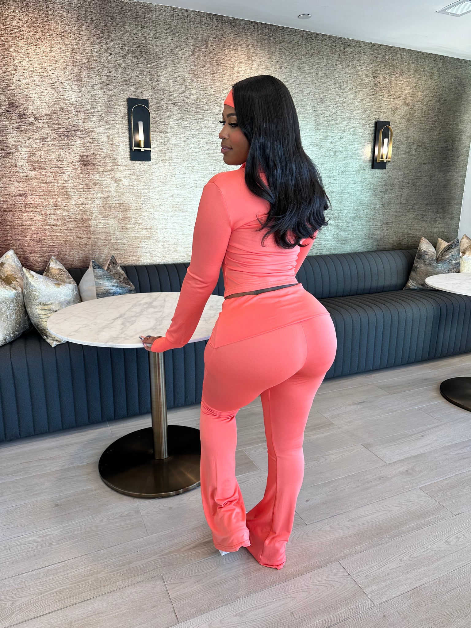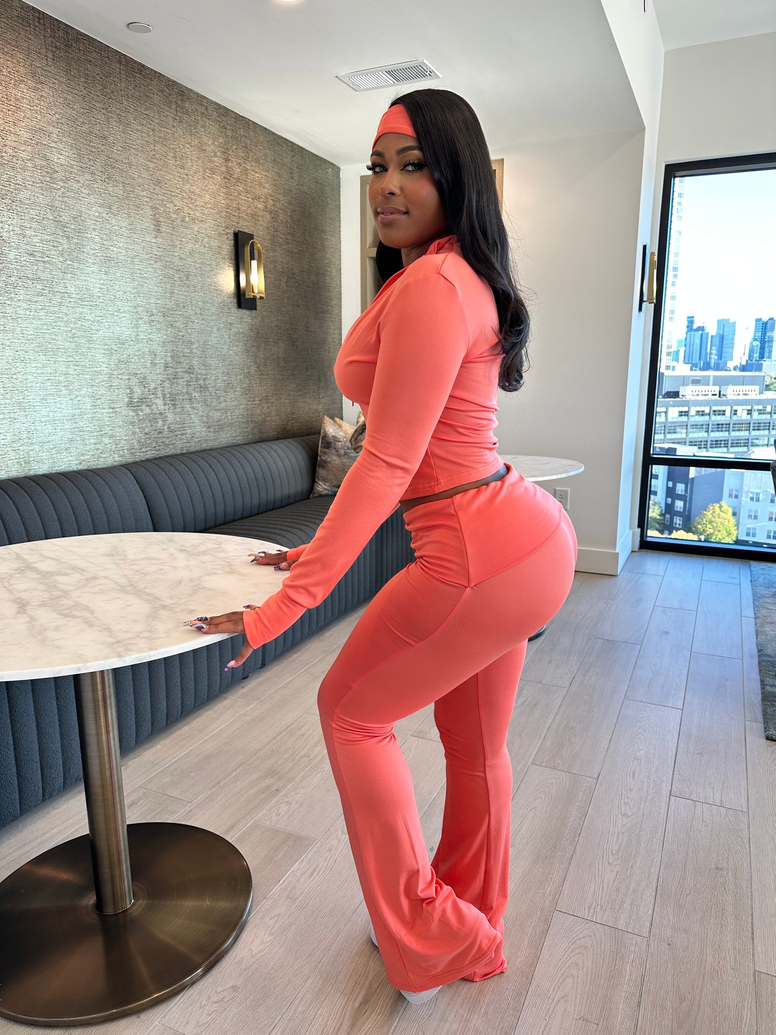 Meet your new go-to for effortless fly days — the In Transit Set w/ Headband. Designed for the girls who stay moving but never miss a slay, this two-piece set blends comfort, stretch, and body-shaping style. The long-sleeve zip-front top lets you adjust your look from sporty to sultry, while the high-waist flare pants contour your curves with that signature LuxeChic snatched fit.