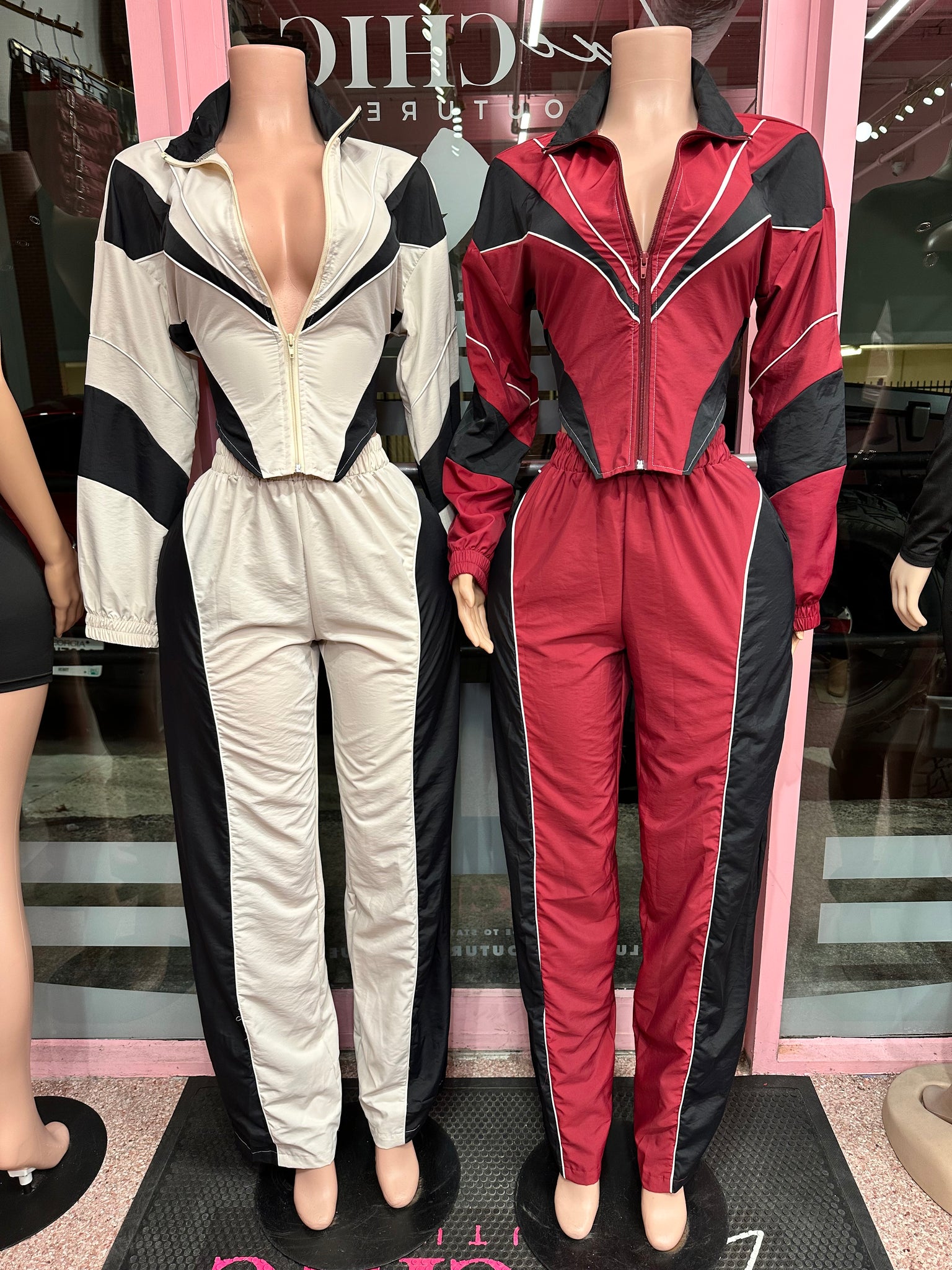 The zip-front windbreaker jacket features bold colorblock paneling that shapes your waist and elevates your silhouette, while the stand collar and flattering fit keep the look clean and stylish. Paired with the matching elastic-waist track pants, this set gives comfort without sacrificing attitude. The color contrast lines elongate the legs, giving a taller, more sculpted look.