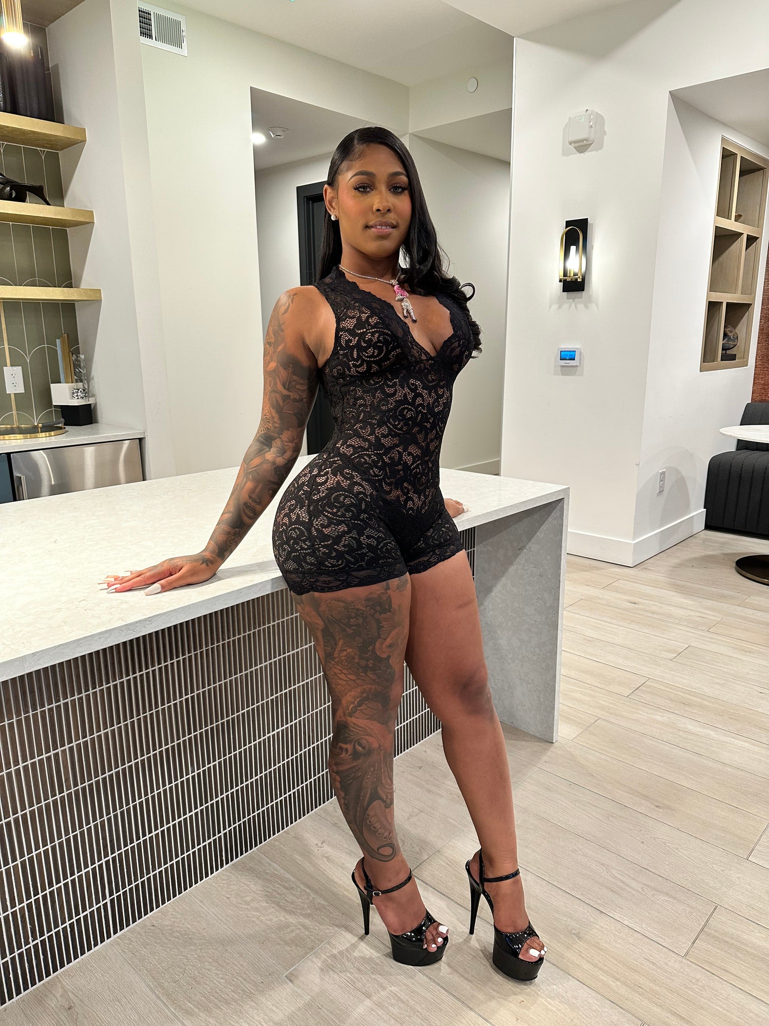 Meet the Unruly Desire Lace Romper — where elegance flirts with danger. Designed for the woman who knows her power, this curve-sculpting lace romper brings confidence, seduction, and luxury all in one look. The piece features stretch floral lace layered over a nude base, giving that perfect barely-there illusion that’s equal parts bold and feminine.