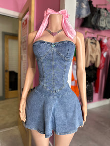 High Hopes Denim Tube Skater Mini Dress- Medium Denim
