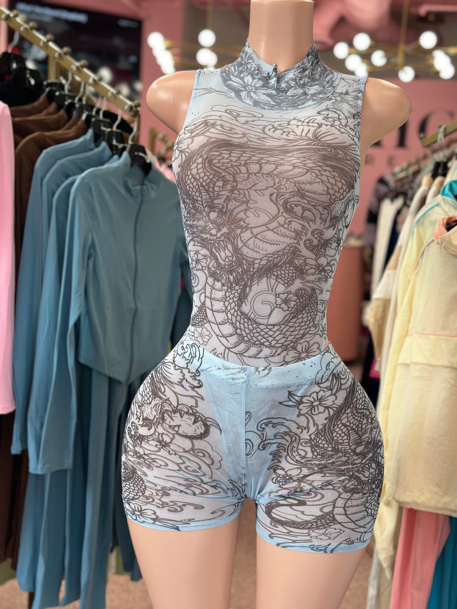 Mesh Biker Short Set- Blue Combo