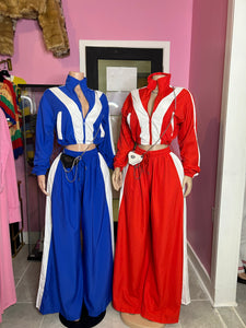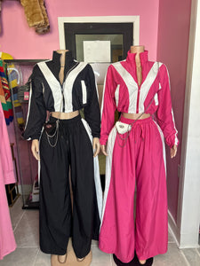 Retro Chic Windbreaker Wide Leg Pant Set- Various Colors