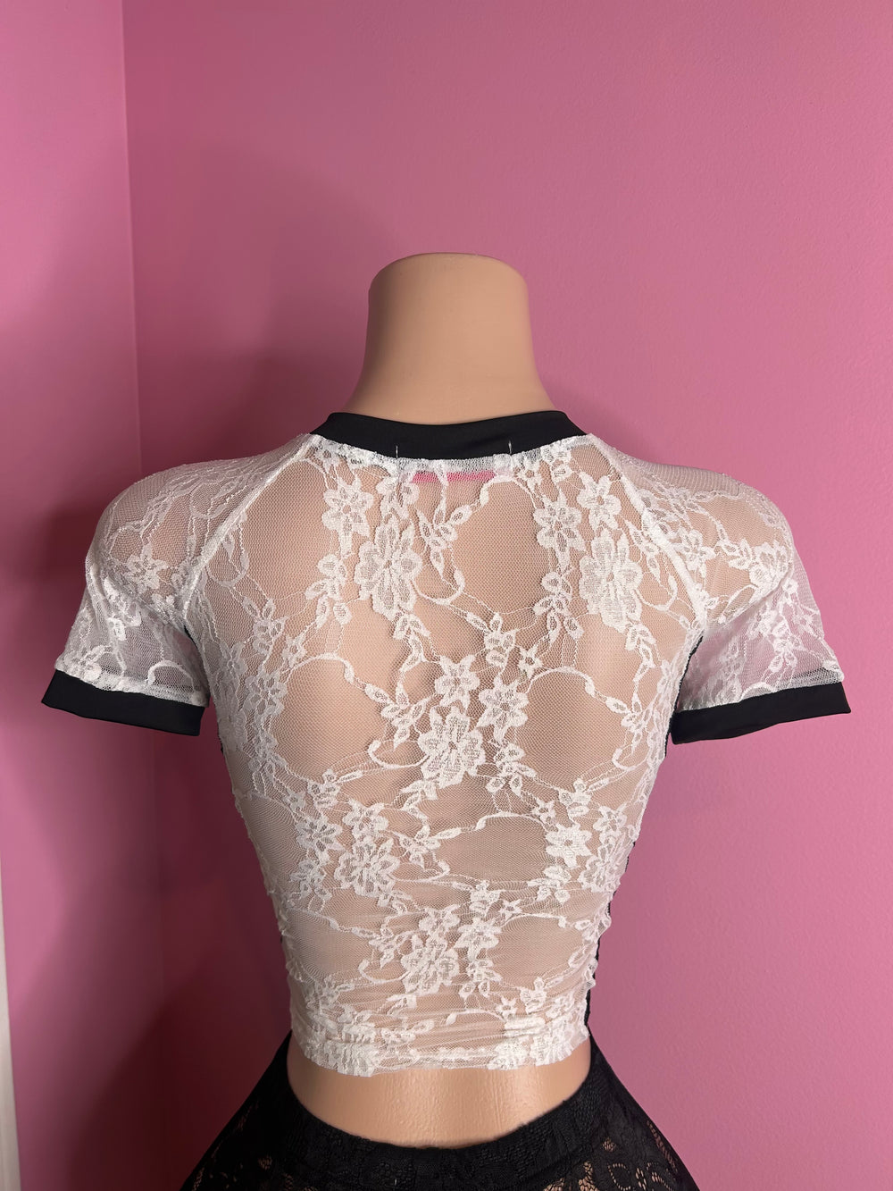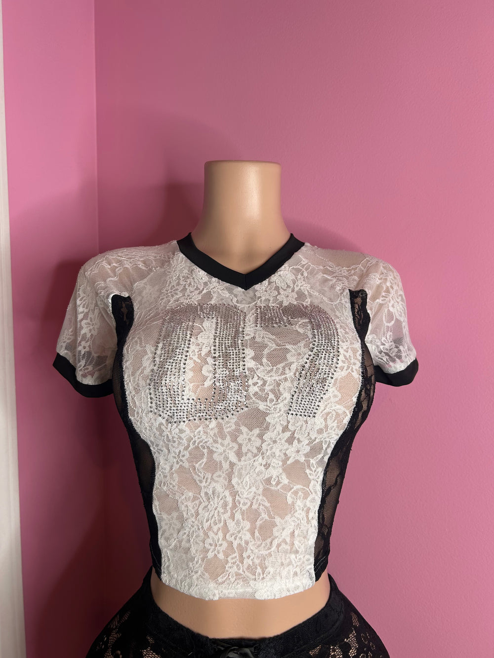 Elevate your wardrobe with our exquisite Lace Top (Style 07) in White/Black. This stunning piece features a delicate lace overlay, complemented by a sleek black trim that highlights its modern design. The top showcases a V-neckline and short sleeves, creating a flattering silhouette perfect for various occasions. Its unique blend of romantic lace and trendy accents makes it ideal for both casual outings and more formal events. Pair it effortlessly with jeans, skirts, or shorts for a chic and contemporary look.