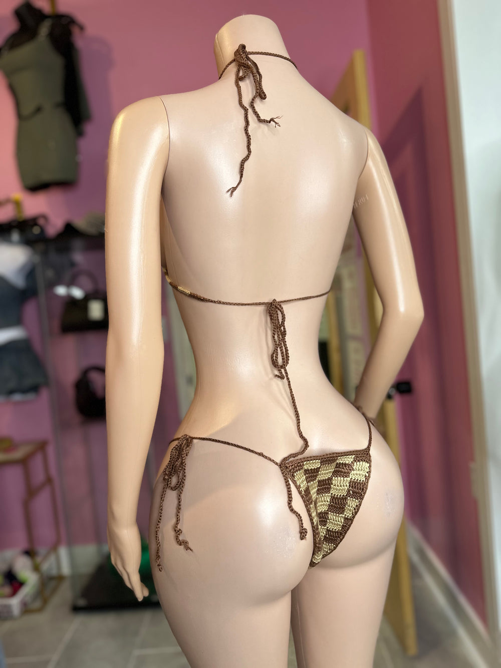 Here Kitty Kitty Bikini Swimsuit Set- Brown