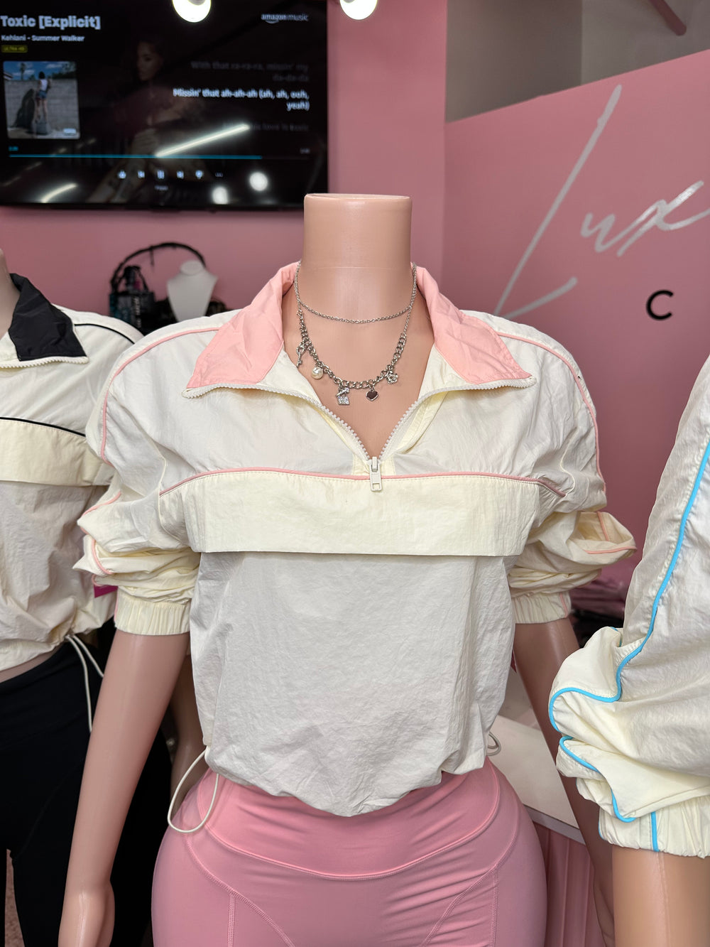 Elevate your casual wardrobe with the "Just Another Chill Night Legging Set," a perfect blend of comfort, style, and versatility. This set features a cropped zip-up light jacket with a soft pastel color-block collar and coordinating high-waisted leggings that hug your curves for a flattering fit. The lightweight, breathable fabric ensures maximum comfort whether you're lounging at home, running errands, or meeting friends for a casual outing.
