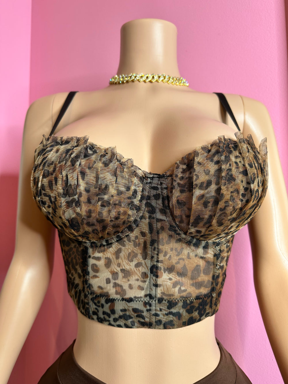 Step up your fashion game with our stunning Leopard Mesh Corset Top, designed for the bold and stylish woman. This chic piece features exquisite frill detailing around the cups, creating a dramatic and flattering silhouette. The semi-sheer leopard mesh fabric is perfect for layering or wearing on its own, making it versatile for various occasions—be it a night out or a casual day. The adjustable spaghetti straps ensure a personalized fit, while the back features a stylish hook-and-eye closure for easy wear. Pair it with high-waisted trousers or a sleek mini skirt to complete your daring ensemble.