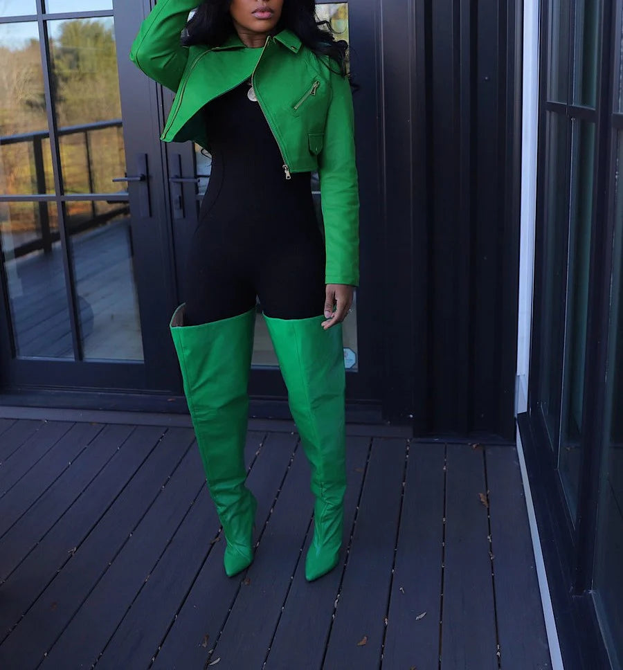 Elevate your outfit and make a statement with this chic biker jacket—ideal for day or night adventures! Whether you're layering it over a tee or pairing it with a stylish dress, this versatile piece is perfect for creating unforgettable looks.