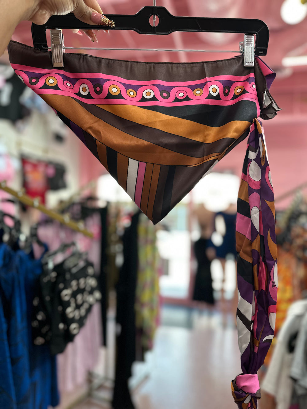 Elevate your style with the Pucci Purple Silk Square Scarf & Headband Set, designed for the fashion-forward woman. Crafted from luxurious, lightweight silk, this versatile set features bold geometric prints in shades of pink, black, white, and gray, perfectly embodying modern elegance with a playful touch. The large square scarf can be styled in multiple ways — worn as a chic neckerchief, a trendy headwrap, or even an eye-catching top. The matching slender headband complements the scarf, adding a refined detail to your ensemble.