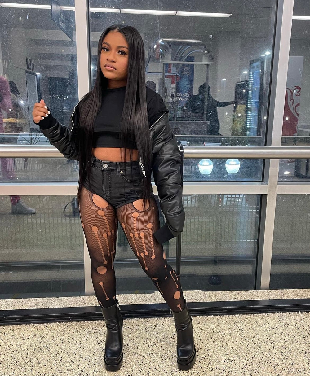 Ripped Cutout Mesh Tights- Black