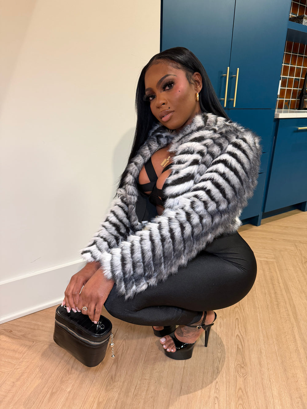 Turn heads without saying a word. The Arctic Status Faux Fur Jacket is that luxury statement layer every baddie needs. Featuring ultra-soft faux fur with a bold grey and black stripe pattern, this cropped jacket delivers high-fashion energy while keeping your look classy, sexy, and elevated.