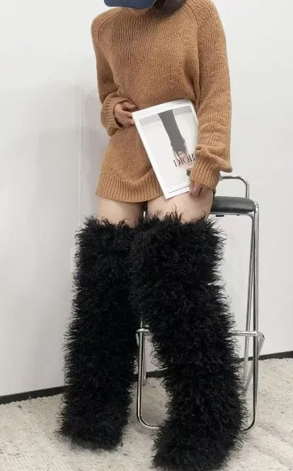 Elevate your fashion game with our Mongolian Fur Thigh High Boots, designed for those who crave both comfort and style. Crafted from soft, high-quality faux fur, these stunning thigh-high boots offer an eye-catching look that's perfect for both casual outings and glamorous occasions.