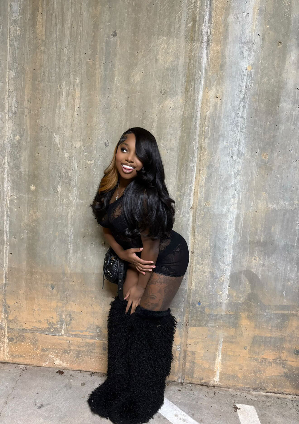 Mongolian Fur Thigh High Boots – Luxe Black Faux Fur Fashion Statement