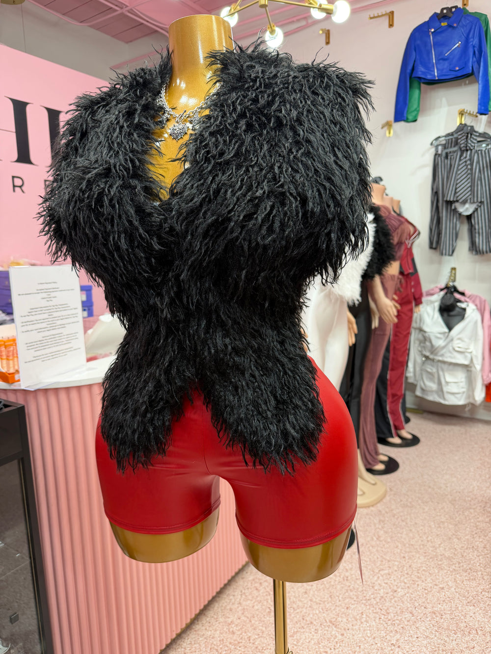 Turn every head the moment you walk in. The Shaggy Mongolian Halter Top is that statement piece your wardrobe’s been waiting for. Designed with ultra-plush shaggy Mongolian faux fur and a dramatic open-back halter tie, this top delivers bold, luxury energy with zero effort.