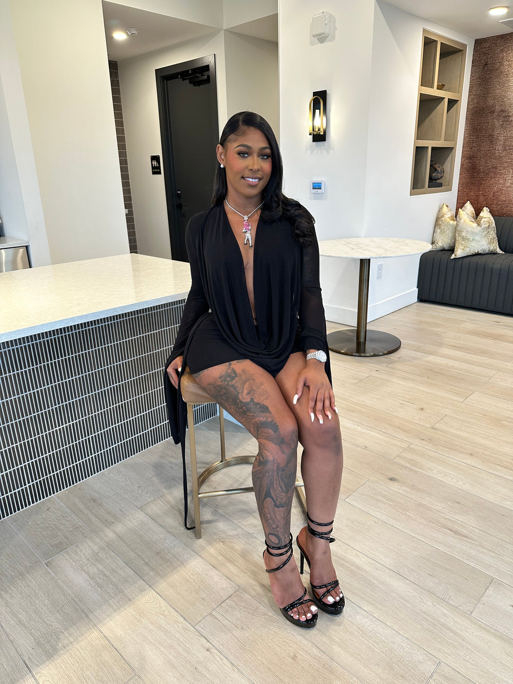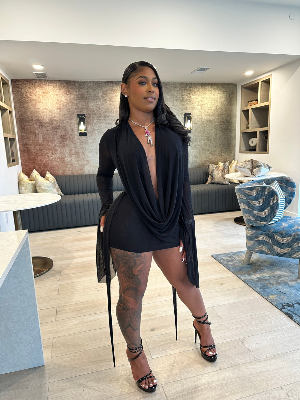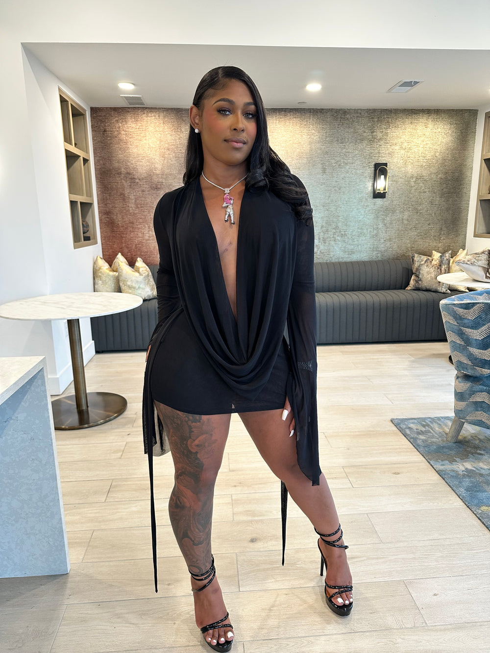 This piece is designed for the girl who loves attention, confidence, and a hint of drama — because subtlety was never the goal. Pair it with transparent heels or strappy stilettos to complete the luxe baddie look.