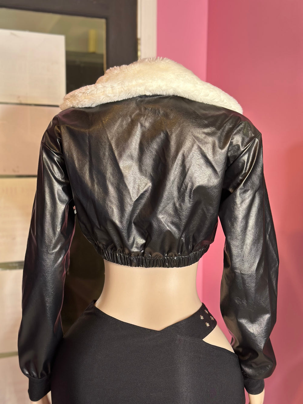 Elevate your winter wardrobe with this stylish Faux Leather Cropped Jacket featuring a sumptuous Sherpa collar. Designed for the fashion-forward individual, this jacket combines edgy elegance with warmth and comfort. Its cropped silhouette gives a flattering shape, perfect for layering over high-waisted jeans or skirts. The dual zippered pockets not only provide convenience but also add a touch of functionality to the design. Ideal for both casual outings and chic evenings, this versatile jacket is a must-have addition for those ready to make a statement while staying cozy.