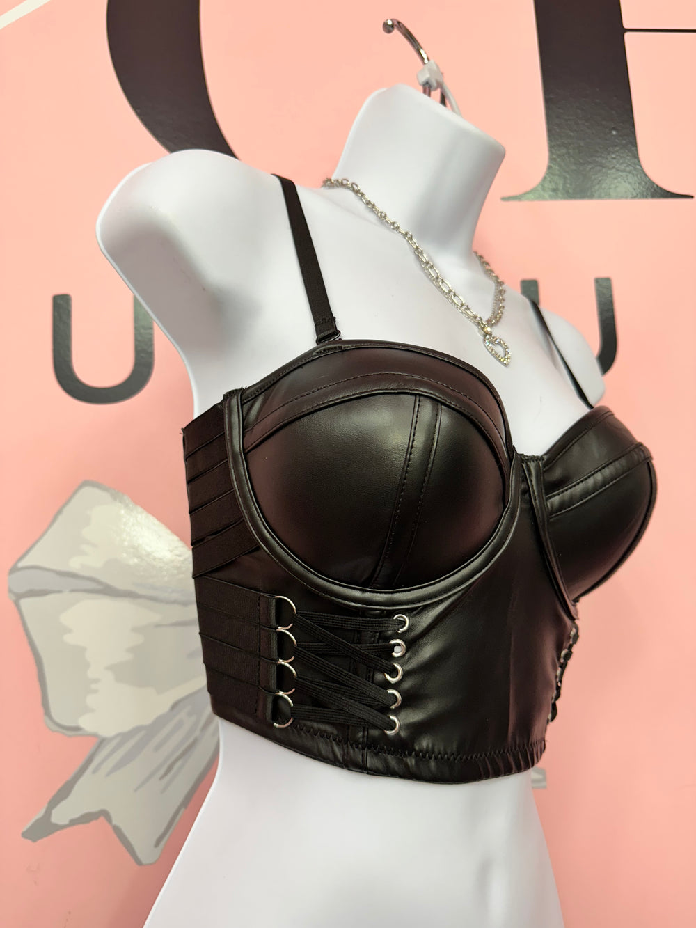 Turn every entrance into main character energy with our Midnight Vixen Faux Leather Push-Up Corset Top — where bold meets seductive. Designed with a smooth faux leather finish and built-in push-up bra cups for instant cleavage lift, this statement piece hugs your curves in all the right places while still offering stretch and comfort.