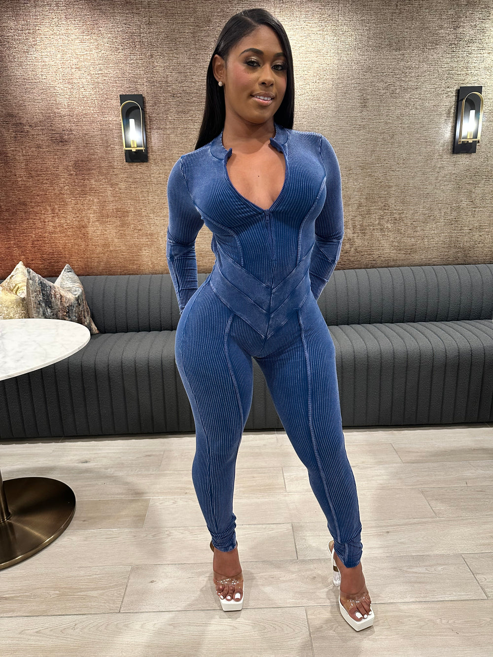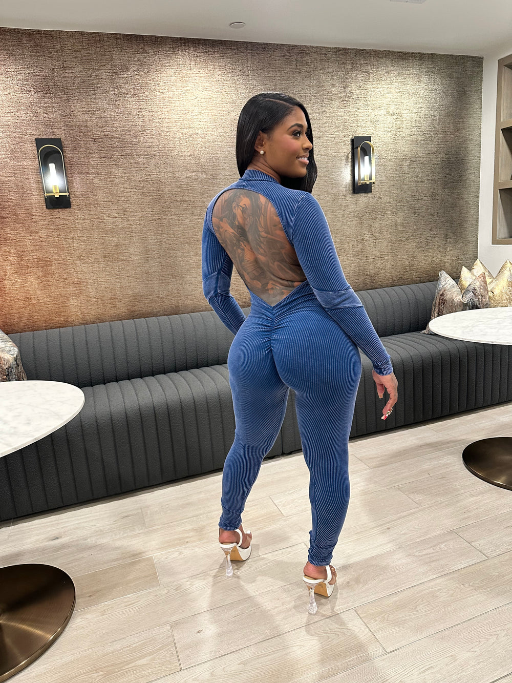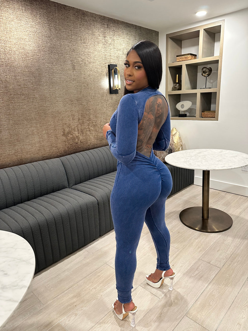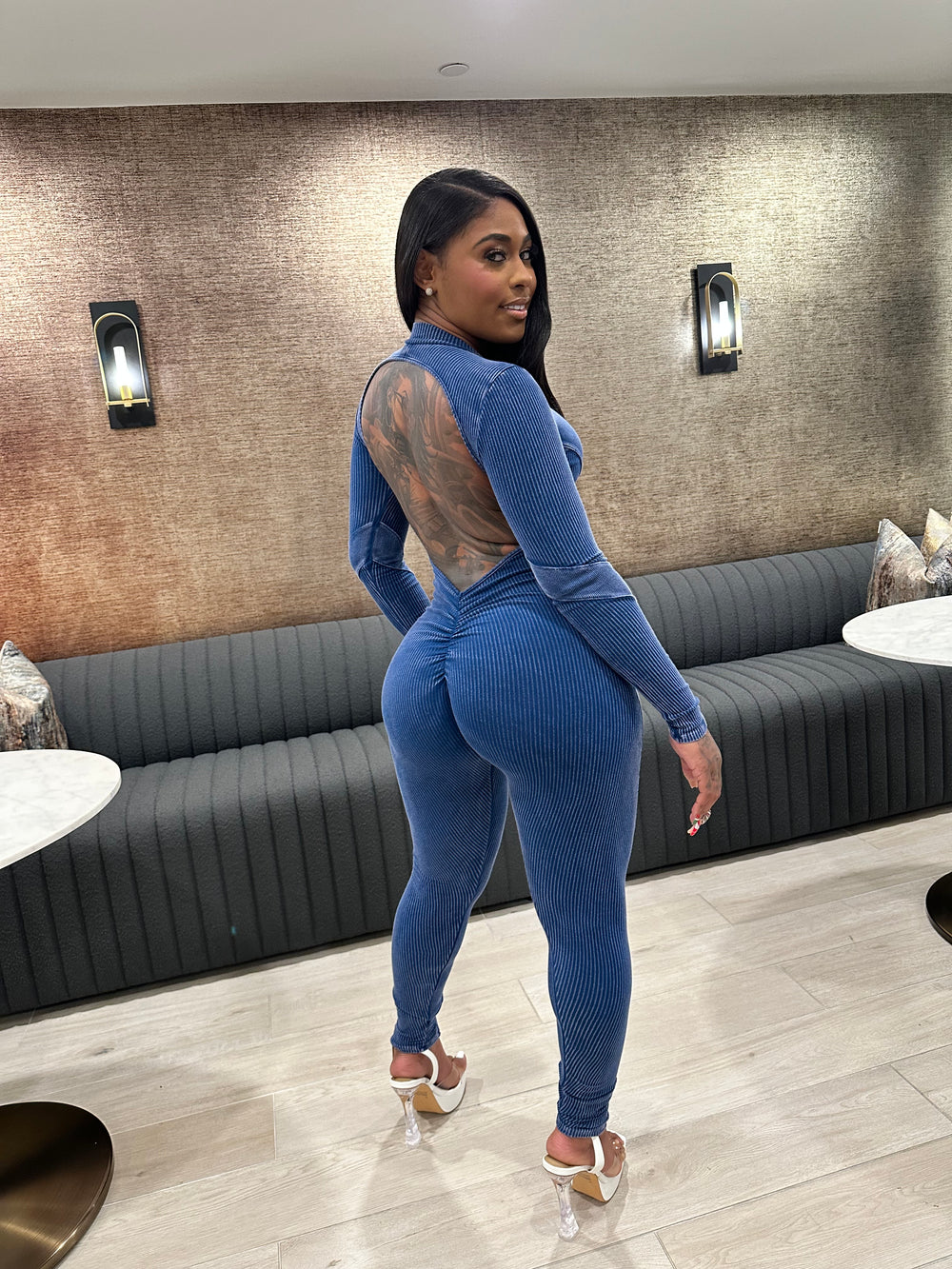 Meet your new favorite curve-commanding essential — the Washed Open Back Jumpsuit – Navy. Designed to hug every inch just right, this jumpsuit delivers effortless sex appeal with a clean, elevated finish.
