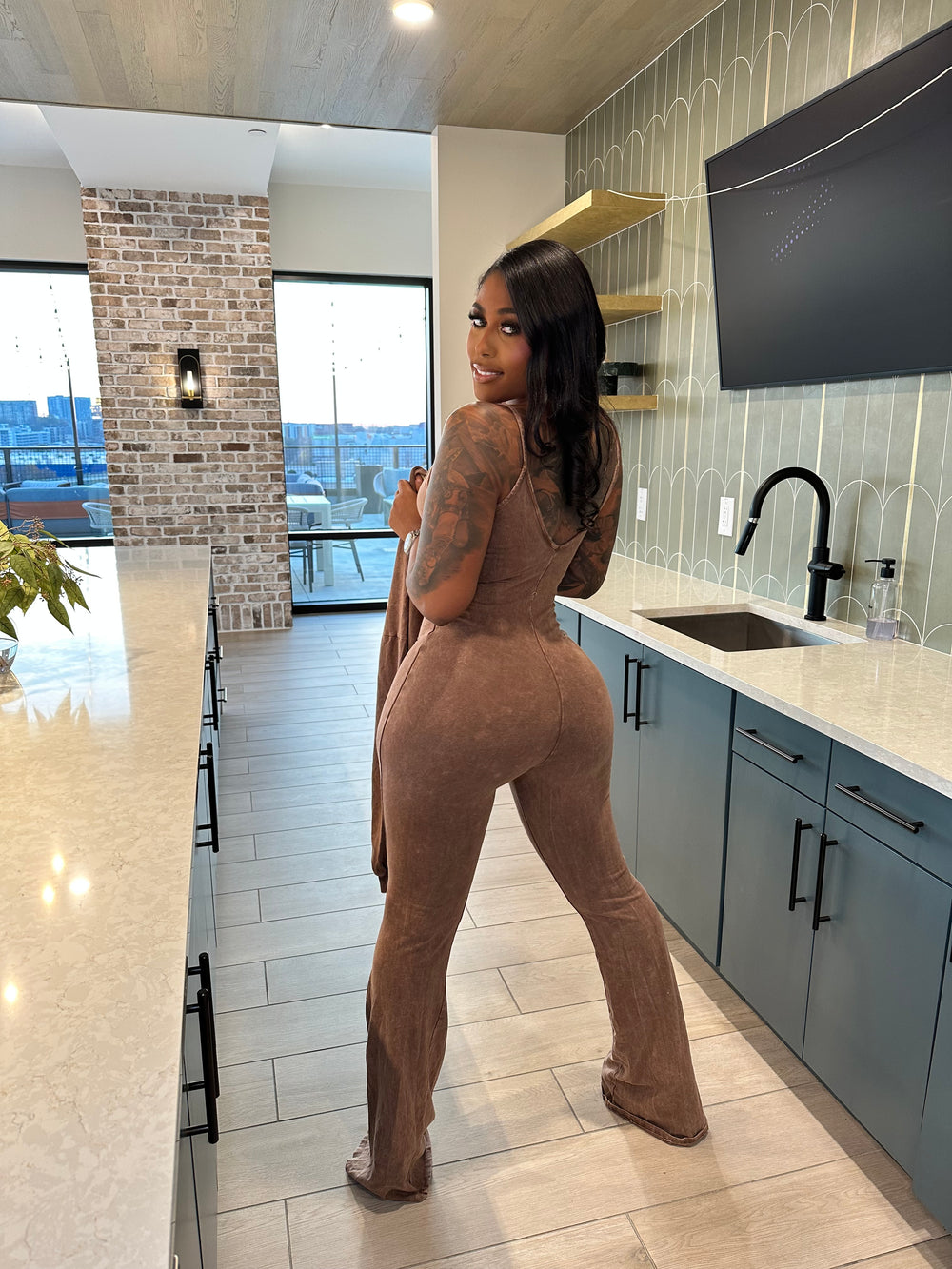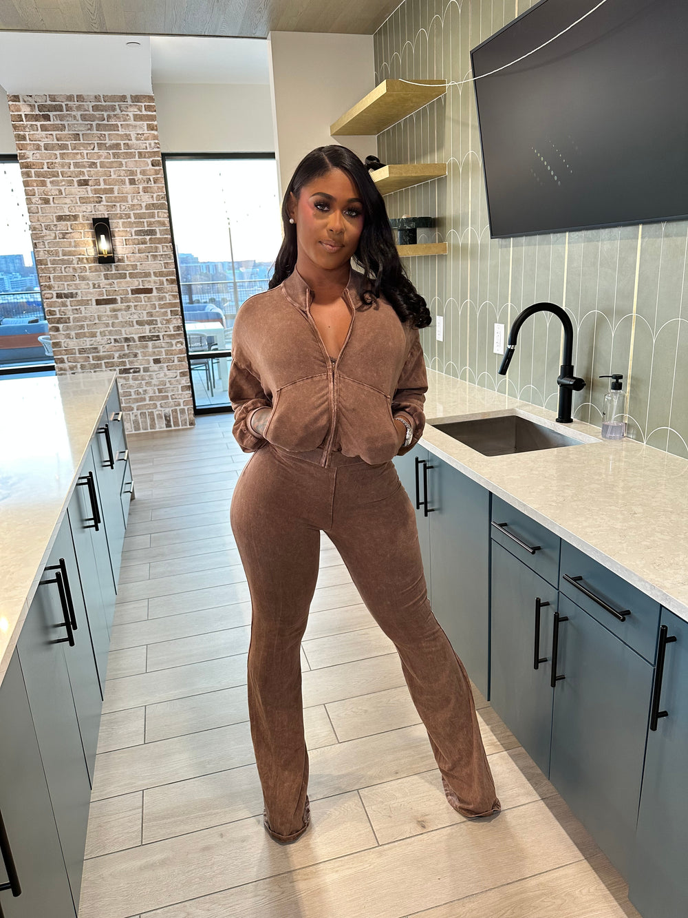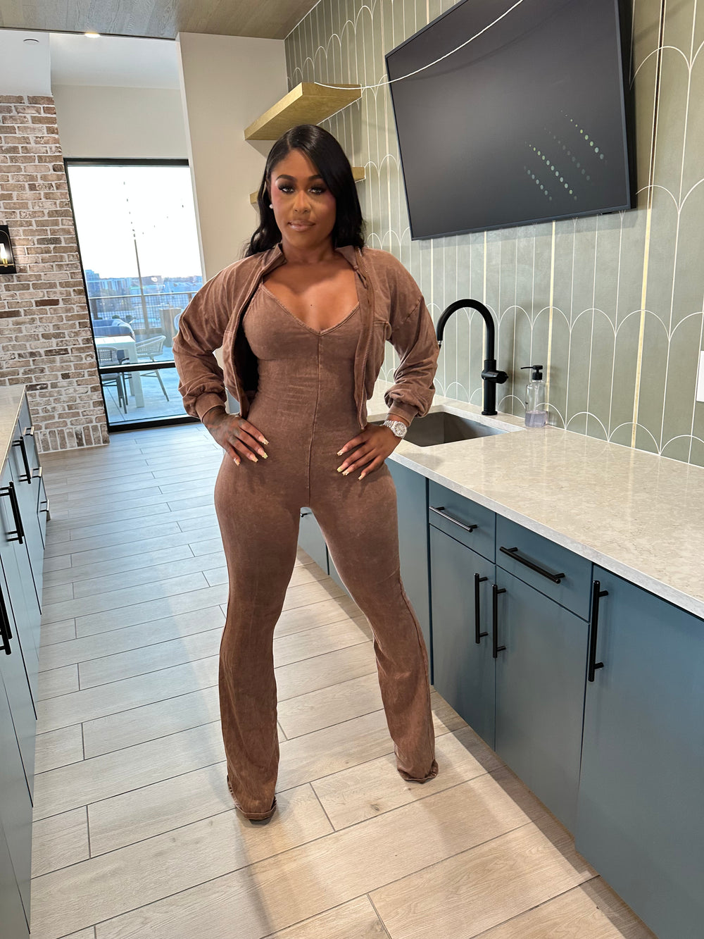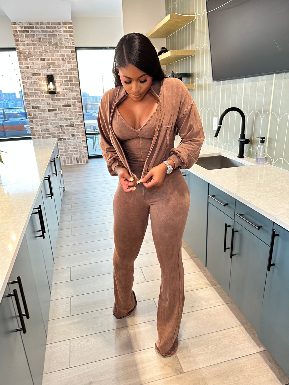Serve soft luxury in the Washed Zip-Up Crop Jacket & Flare Jumpsuit Set – Mocha Latte, the neutral-toned baddie essential you can dress up or down with ease. This creamy mineral-wash mocha shade gives a warm, rich, elevated look that flatters every skin tone.